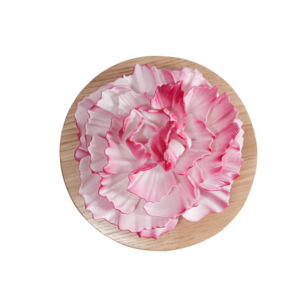 Il castagno, con la sua trama calda e viva, diventa il terreno simbolico su cui fiorisce il garofano, come la terra ponzese che nutre e custodisce la memoria collettiva della sua gente.